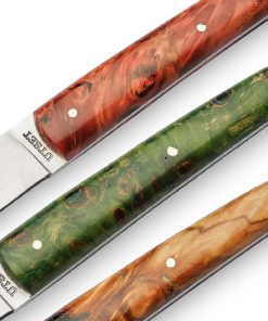 Coltello bistecca utset fatto a mano lama liscia e manico legno verde trattato