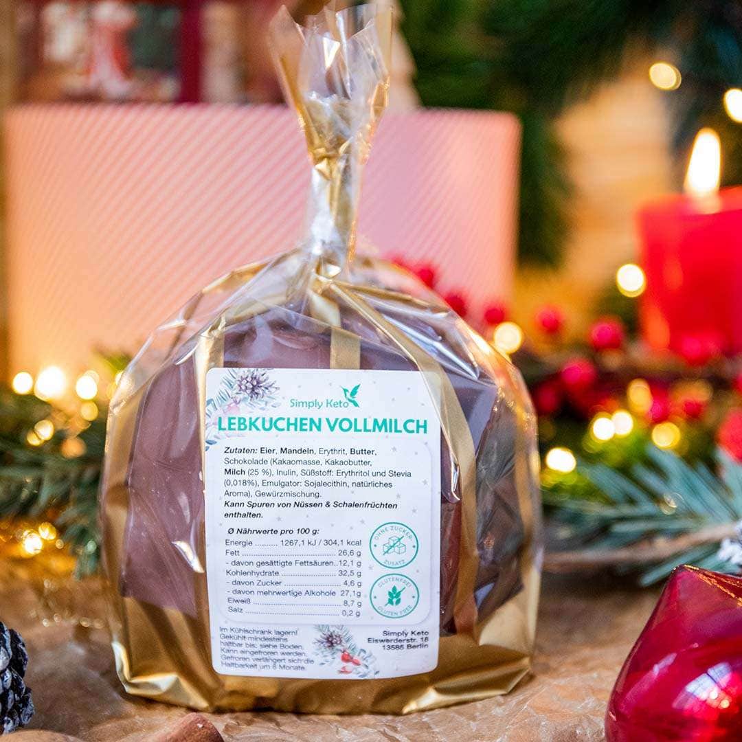 Ogni pan di zenzero è amorevolmente realizzato a mano nella nostra pasticceria Simply Keto interna . Lavoriamo esclusivamente con prodotti senza glutine e possiamo quindi escludere assolutamente la contaminazione nella nostra cucina! Sebbene i nostri Lebkuchen a basso contenuto di carboidrati* abbiano la forma di Elisen Lebkuchen, non abbiamo i wafer. Ne facciamo volutamente a meno e ricopriamo le prelibatezze con cioccolato paradisiaco senza zuccheri aggiunti e un pizzico di olio d’arancia. Non solo hanno un sapore fantastico , ma sono anche senza glutine e a basso contenuto di carboidrati.