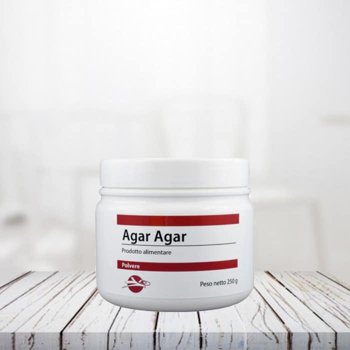 Agar Agar vanta un elevato potere gelificante (SM 300) dovuto all’alto contenuto di fibre solubili. Chimicamente l’Agar Agar è un polimero lineare formato da unità di galattosio; si presenta sotto forma di polvere biancastra, insapore ed insolubile in acqua fredda. Tuttavia la sua solubilità aumenta notevolmente a temperatura intorno agli 80-90 °C. La gelificazione avverrà dopo la dissoluzione a caldo e successivo raffreddamento a temperatura ambiente.