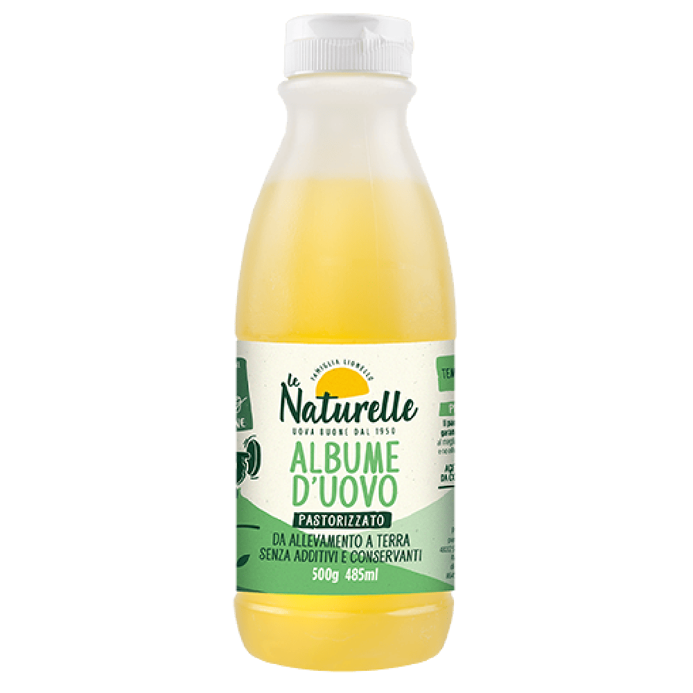 Ogni bottiglia è da 500 g e corrisponde a 16 albumi d’uovo. Si conserva a temperatura ambiente! Una volta aperto conservare in frigo e consumare entro 48 ore