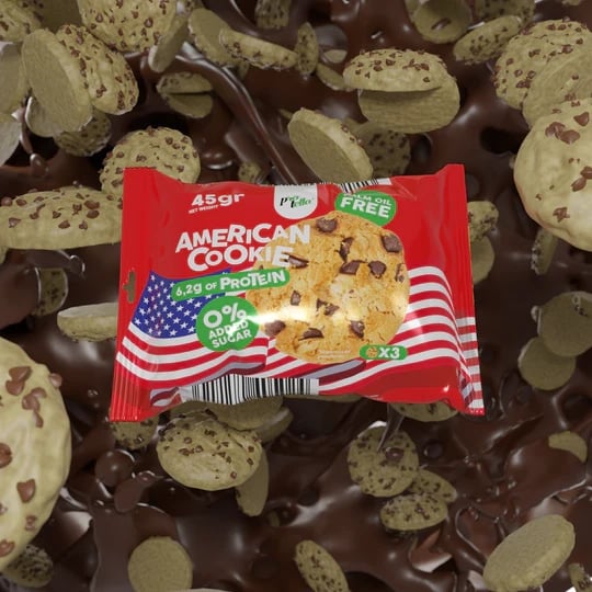 L’American Cookies è un biscotto cotto con gocce di cioccolato. Grazie alla sua percentuale di proteine, è il miglior snack per ritrovare le forze e soddisfare la tua voglia di dolci. Contiene fibra di pisello e inoltre non contiene zuccheri aggiunti o olio di palma.