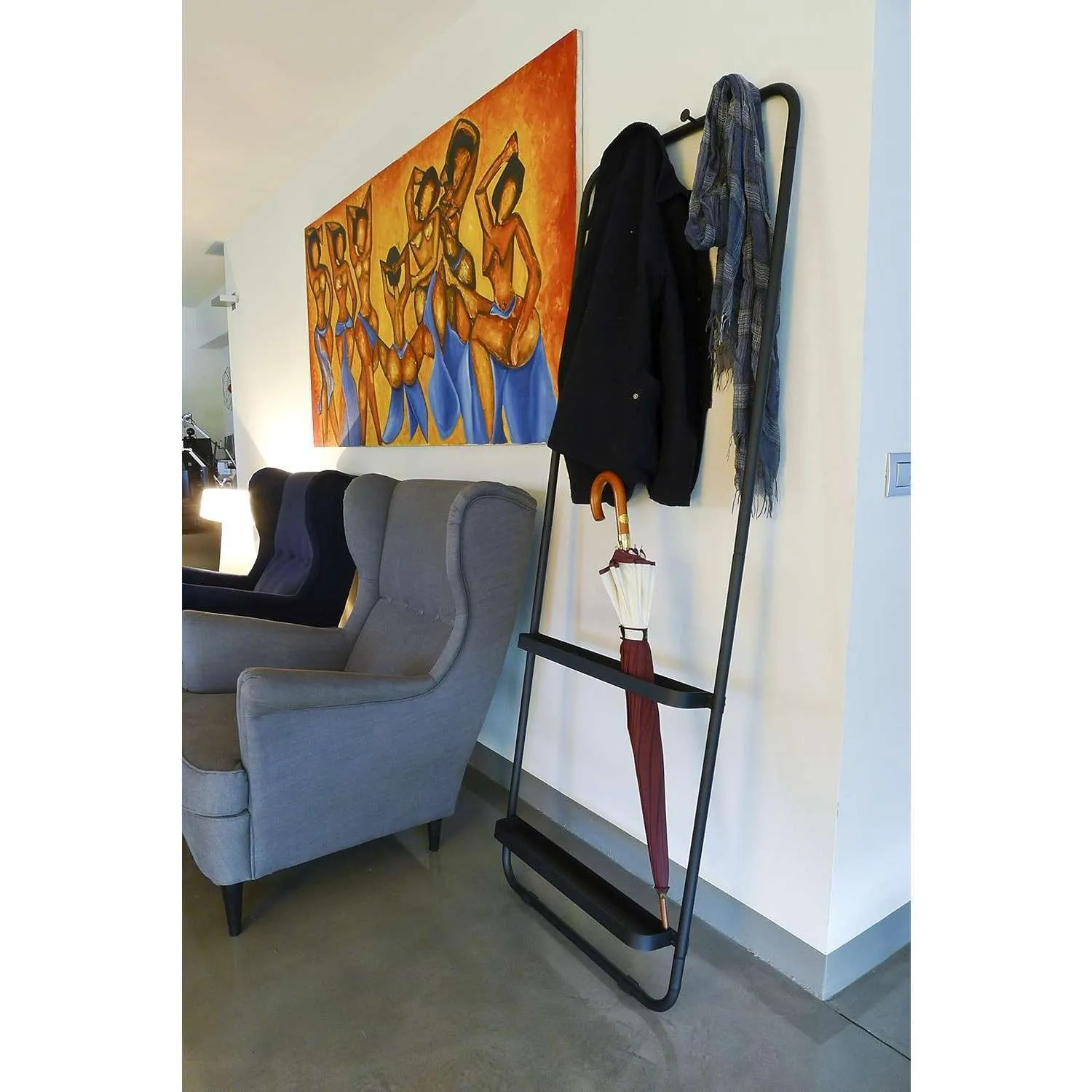 Appendiabiti e porta ombrelli in metallo nero Mod. Duo Pusher