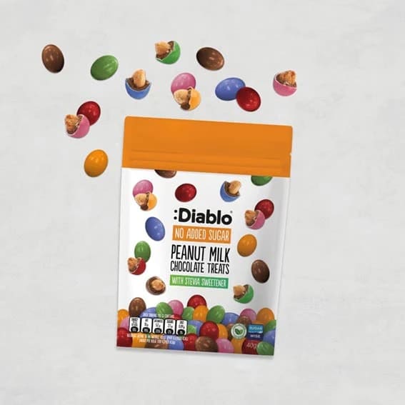 Ingredienti: Cioccolato al latte – 48%, edulcoranti (maltitolo, glicosidi steviolici), burro di cacao, latte intero in polvere , pasta di cacao, latte scremato in polvere , fibre (inulina), burro concentrato, siero di latte in polvere , emulsionante ( lecitina di soia ) e aromi), edulcoranti (maltitolo, sorbitolo e glicosidi steviolici), arachidi (21%), addensante (E414), coloranti (E171, E150c, E160a, E162, E163, E100) e agente di rivestimento (E903). Solidi di cacao: 30% minimo nel cioccolato al latte .