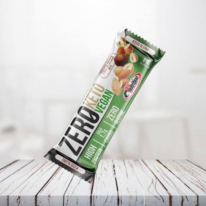 Zero Keto Vegan Bar è una barretta non ricoperta, ad alto tenore proteico (40%) e ridotto contenuto di carboidrati, zuccheri e totalmente priva di lattosio. Le proteine utilizzate sono naturalmente presenti negli ingredienti utilizzati e sono totalmente di origine vegetale. La barretta contiene meno del 5% di carboidrati ed è ricca di acidi grassi buoni di origine vegetale. Il prodotto non contiene olio di palma, grassi idrogenati e glutine. ideale per chi segue diete keto, proteiche ed a ridotto contenuto di zuccheri. Adatta per chi segue uno stile di vita vegano