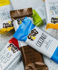 Ingredienti: Cioccolato al latte di cocco con edulcoranti (25%): [Burro di cacao, latte di cocco in polvere (19%): (estratto di cocco, amido idrolizzato, alfa-ciclodestrina), edulcoranti: (eritritolo (16%), glicosidi steviolici (0,01 %)), fibre alimentari: (polidestrosio, inulina), cacao magro in polvere, amido di tapioca, emulsionante: lecitina di girasole, aroma], arachidi (19%), fibre alimentari: (oligofruttosio, polidestrosio ), farina di cocco, amido di tapioca , edulcoranti: (eritritolo (6%), glicosidi steviolici (0,01%)), umettante: glicerolo, olio di cocco, emulsionante: lecitina di girasole, cacao magro in polvere, aroma, antiossidante: (miscela di alfa-, beta , gamma e delta tocoferoli)