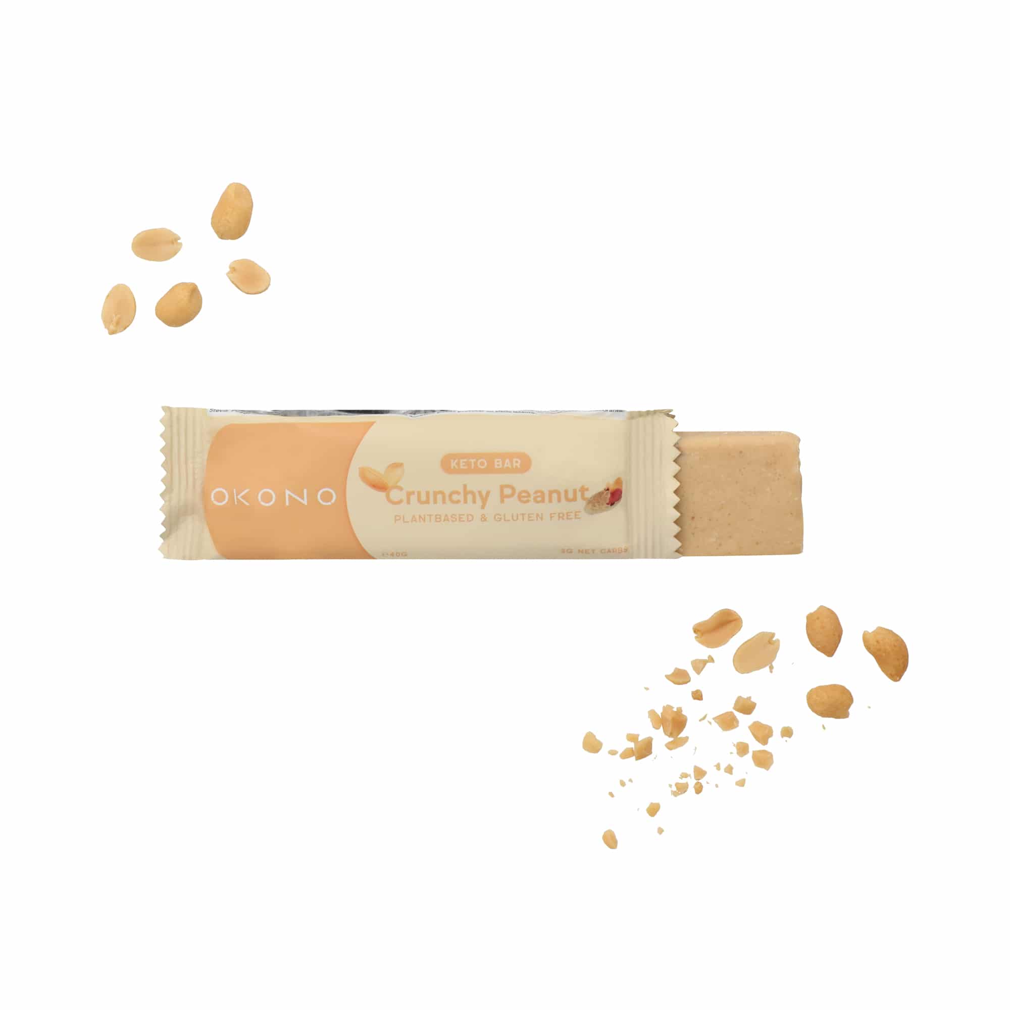 Ingredienti: Pasta di arachidi (21%), Burro di cacao, Farina di mandorle , Fibra di radice di cicoria, Arachidi tostate (10%), Polvere MCT senza palma, Proteine isolate di piselli, Cocco grattugiato, Dolcificante (Eritritolo, Glicosidi steviolici della stevia), Fibra di acacia, Semi di lino marrone, Emulsionante: Lecitina, Sale iodato, Olio di arachidi .