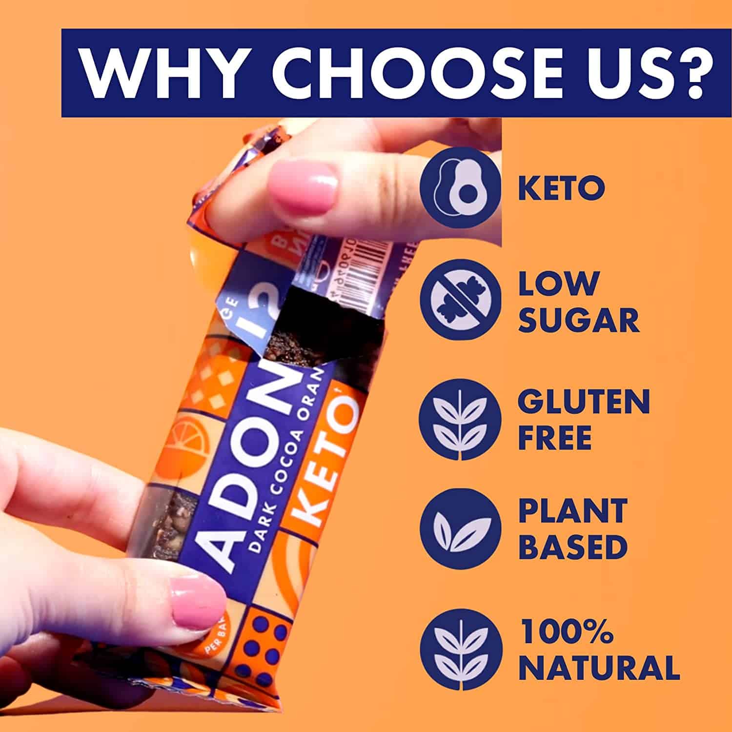Questa barretta keto al cioccolato e arancia di Adonis è veramente un mix di ingredienti eccellenti a partire dalle noci del brasile che ne sono il primo ingrediente. Dolcificate solo con eritritolo le barrette di Adonis non solo sono a basso contenuto di carboidrati e adatte a chi segue una dieta chetogenica ma anche senza glutine e vegane.