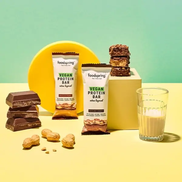 Ce lo avete chiesto? Vi abbiamo ascoltato! Ecco il nuovo membro della famiglia delle Barrette Proteiche foodspring: la Barretta Proteica Vegana Multistrato. In che modo è diversa? Si tratta di una golosa barretta multistrato, vegana (ovviamente) e incredibilmente deliziosa – dolce, ricca di cacao e nocciola. Inoltre, è un favoloso snack fit, con il suo alto contenuto di proteine e fibre. Anche per i non vegani. Quindi, diamole un caloroso benvenuto! Ti amiamo già.