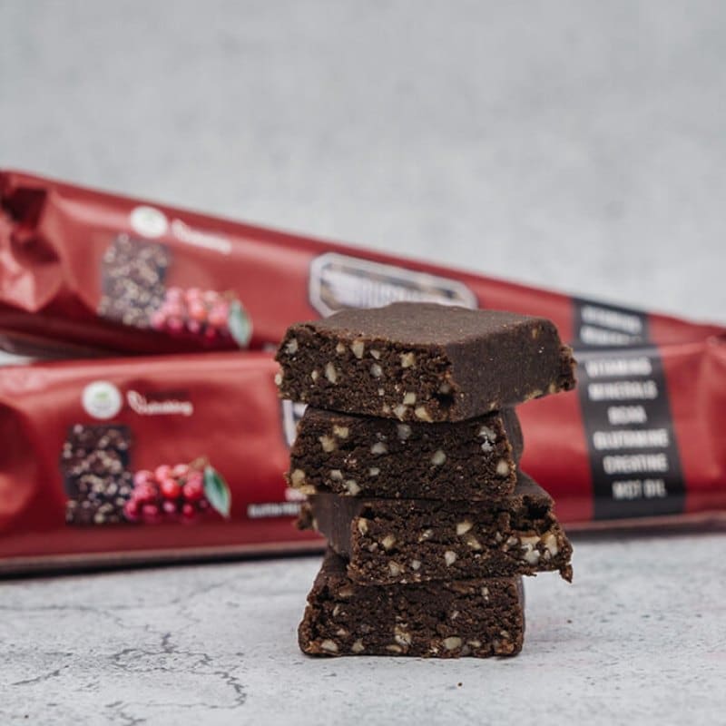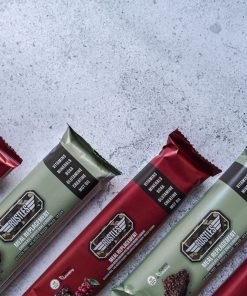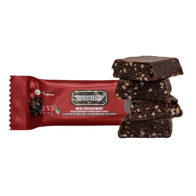 Ingredienti : pasta di datteri, granella di nocciole (12%) , farina di mandorle, fibra alimentare: oligofruttosio, cacao magro in polvere (6,9%), BCAA 2:1:1 (5,6%), glutammina (L-glutammina) (5,6%), umettante: glicerolo, farina di cocco , Creatina (Creatina Monoidrato) (3,4%), olio di cocco, amarena disidratata (2%), olio MCT (1,6%), emulsionante: lecitina di girasole, vitamine (1,2%): [Vitamina-C (acido ascorbico), vitamina E (dl-𝛼-tocoferil acetato), vitamina B1 (tiamina mononitrato), acido pantotenico (d-calcio pantotenato), vitamina B6 (piridossina cloridrato), vitamina B2 (riboflavina), vitamina B3 (nicotinammide), vitamina A (acetato di retinile), vitamina K1 (fitonadione), biotina, acido folico, vitamina D (colecalciferolo), vitamina K2 (vitamina K2 (MK7)), vitamina B12 (cianocobalamina)], minerali (0,5%): [Potassio (citrato di potassio), magnesio (citrato di magnesio), calcio (citrato di calcio), zinco (citrato di zinco), ferro (fumarato ferroso),Manganese (gluconato di manganese), rame (gluconato di rame), selenio (selenito di sodio), molibdeno (molibdato di sodio), iodio (ioduro di potassio), cromo (picolinato di cromo)], aroma (0,3%), antiossidante: (miscela di alfa-, beta, gamma e delta tocoferoli)