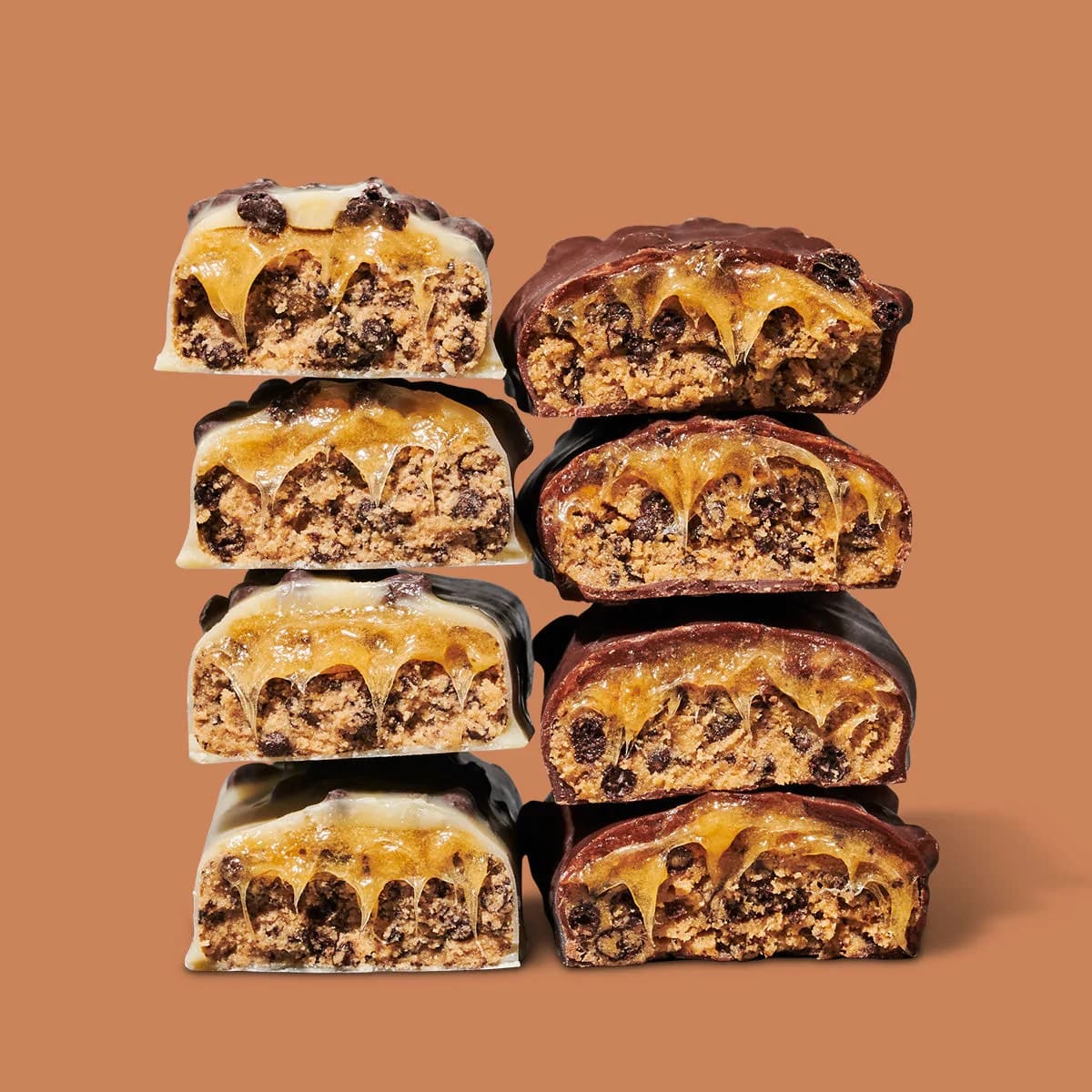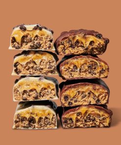 INGREDIENTI: Miscela di proteine vegetali: (isolato di proteine del pisello, pepite proteiche di soia ( isolato di proteine di soia , cacao, amido di tapioca), isolato di proteine di soia ), rivestimento al gusto di cioccolato con edulcorante (21%): (burro di cacao, farina di soia , edulcorante: xilitolo, cacao Massa, emulsionante: lecitina di girasole, aroma naturale), fibra di radice di cicoria, fibra di barbabietola, emulsionante: lecitina di girasole, pasta di arachidi , umettante: glicerina vegetale, olio di cocco, burro di cacao, aroma naturale, acqua, addensante: gomma di acacia, estratto di tè verde , edulcorante: estratto di stevia (glicosidi steviolici), sale himalayano, agente acidificante: acido citrico.