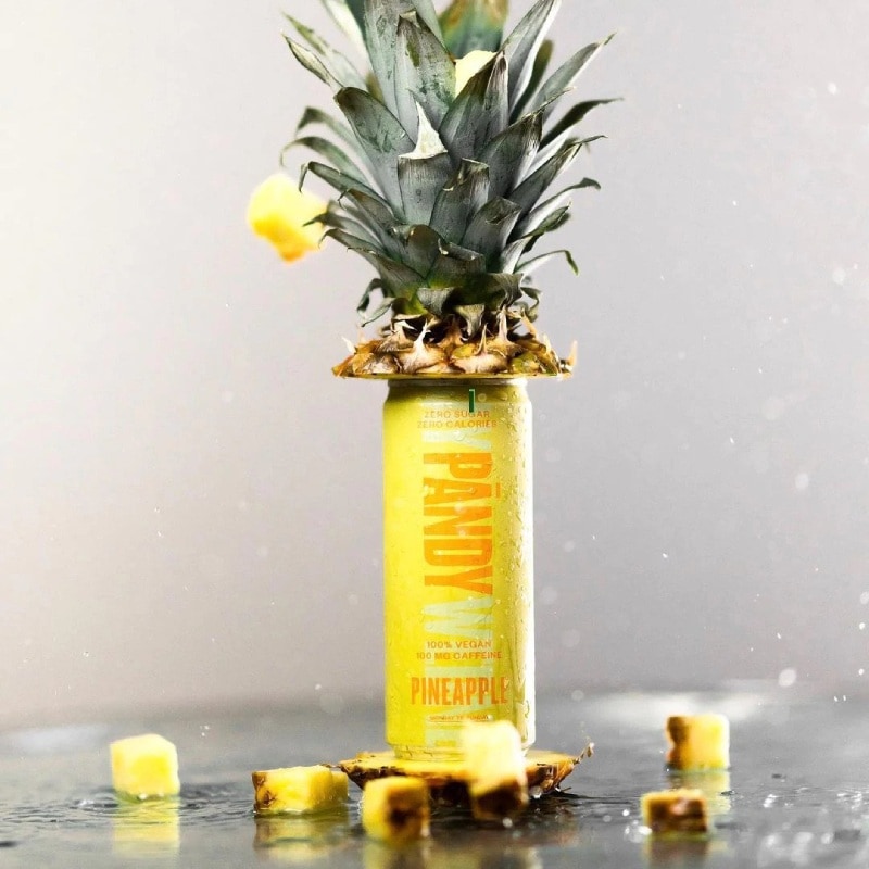 Una   bevanda energetica  gassata senza zucchero al gusto di ananas fruttato.
