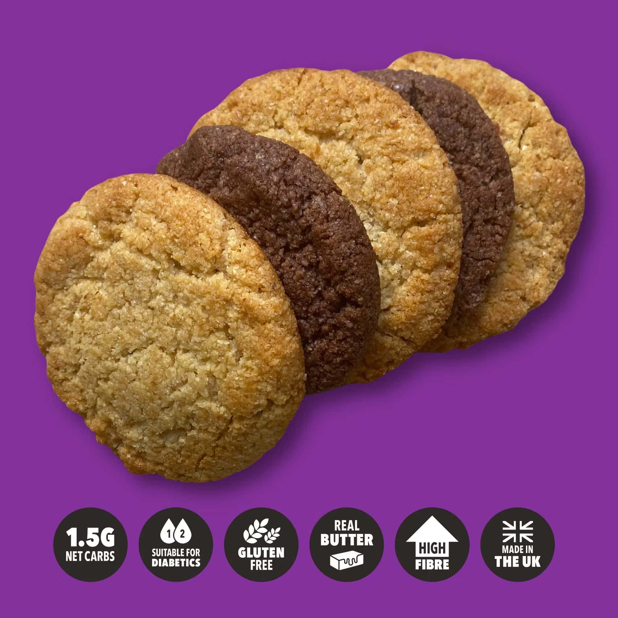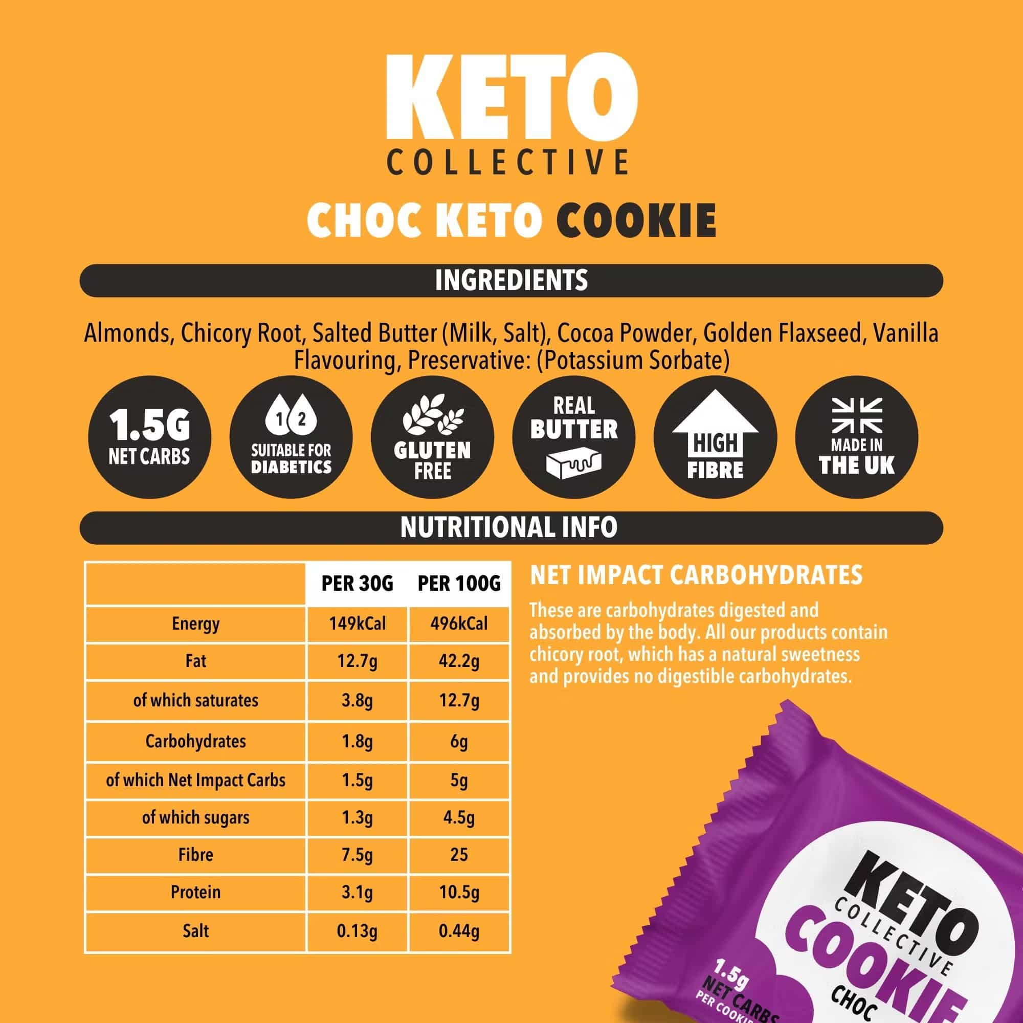 Ecco a voi i Keto Cookie di Keto Collective, il biscotto perfetto per chi cerca uno spuntino delizioso e nutriente! Realizzati nel Regno Unito con vero burro e solo una manciata di ingredienti, questi deliziosi biscotti Choc contengono solo 1,5 g di carboidrati netti ciascuno.