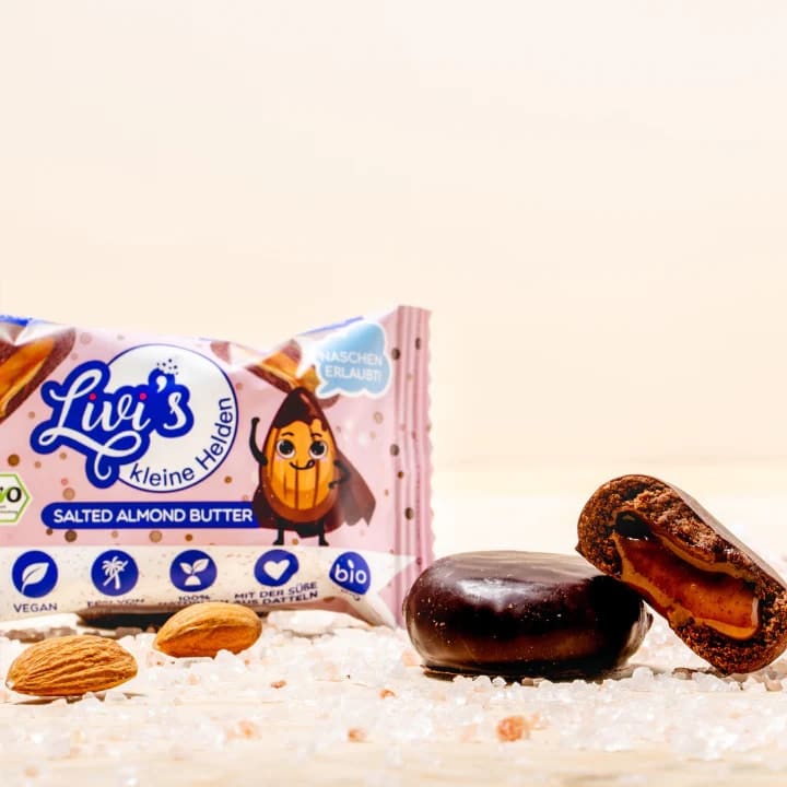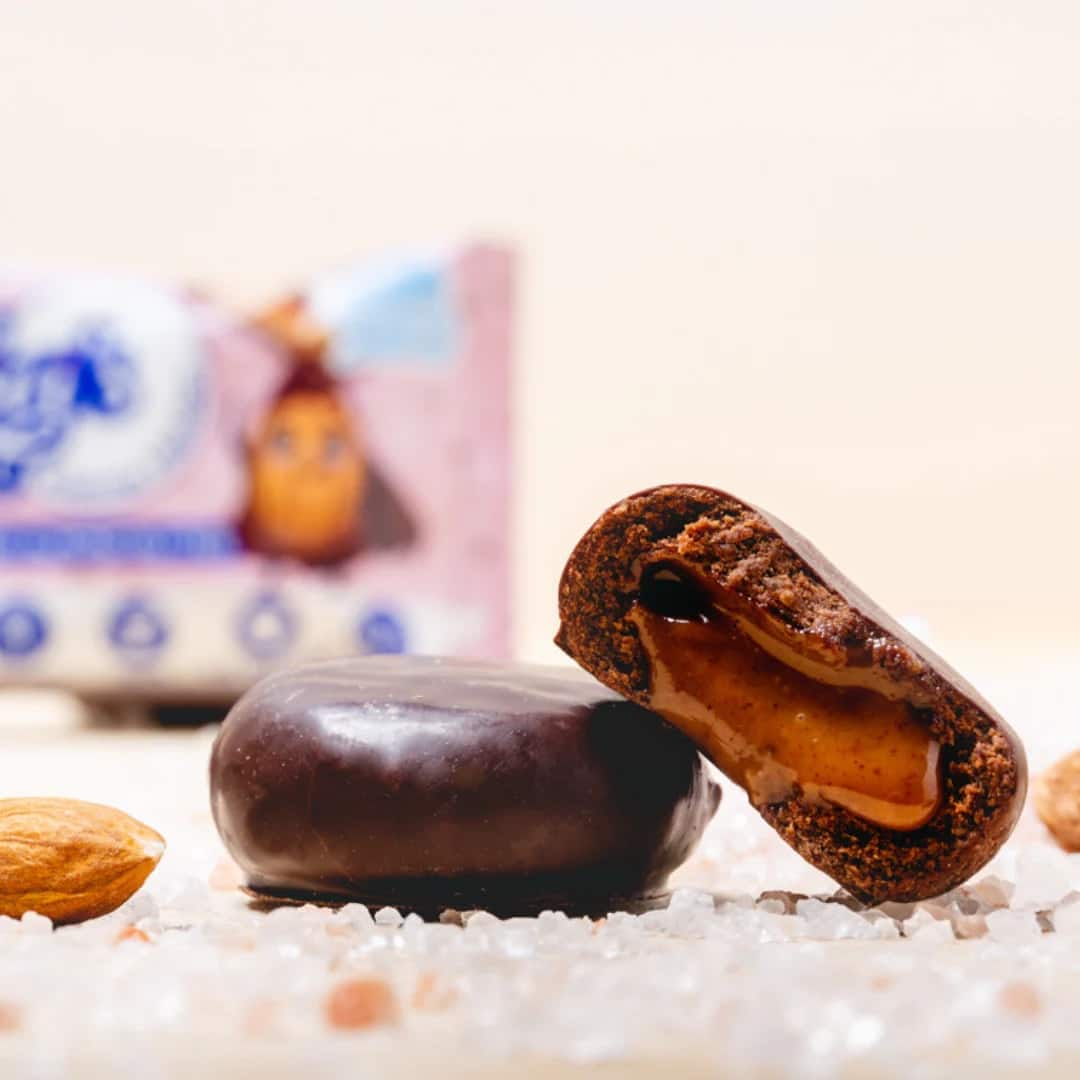 Travestite da caramelle, le palline colpiscono per i loro ingredienti eccellenti: sotto la loro copertura di cioccolato fondente (proveniente dalla Svizzera, con l’88% di cacao) c’è una confettura di frutta a base di datteri combinata con un ripieno cremoso, dolce e salato di mandorle con mandorle appena macinate.
