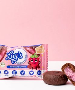 La pasticceria biologica al frutto di datteri e cacao al lampone combina il gusto del lampone, del cocco e del cacao. La nota aspra del cacao e il ripieno fruttato di lamponi assicurano una vera esperienza di gusto.
