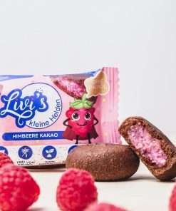 La pasticceria biologica al frutto di datteri e cacao al lampone combina il gusto del lampone, del cocco e del cacao. La nota aspra del cacao e il ripieno fruttato di lamponi assicurano una vera esperienza di gusto.