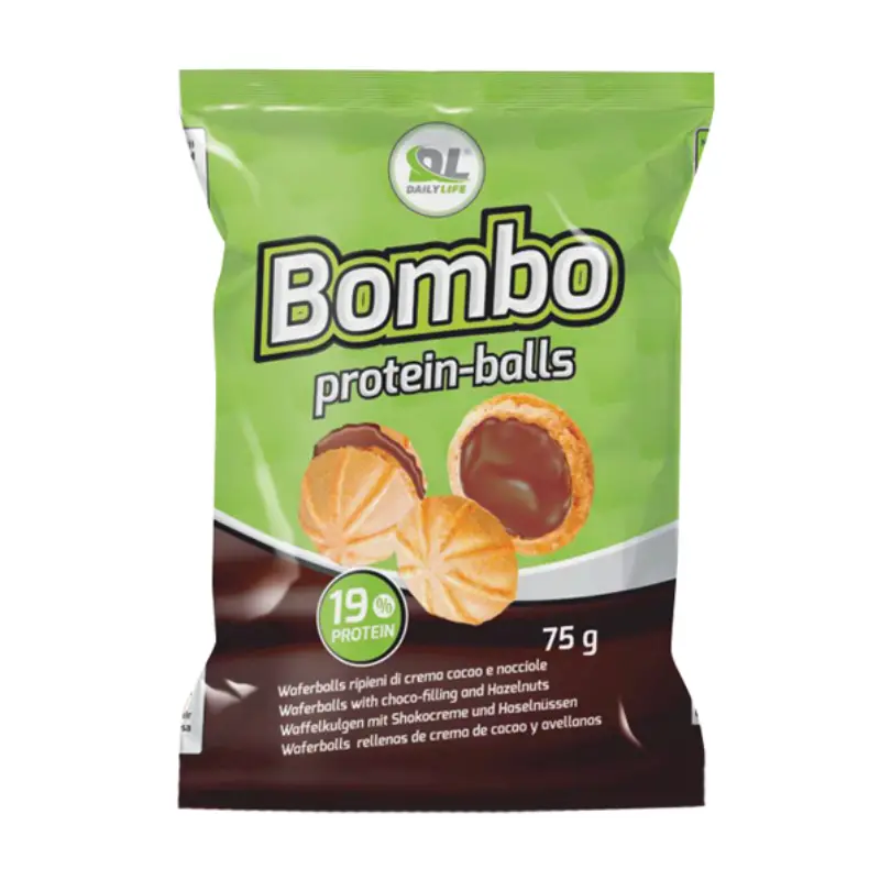 Bombo è un incredibile snack di bombe di wafer ripiene di una deliziosa crema proteica al cacao e nocciole senza zuccheri aggiunti. Comodo da portare con sé in palestra o al lavoro per avere sempre una scorta proteica ed energetica con un gusto super.