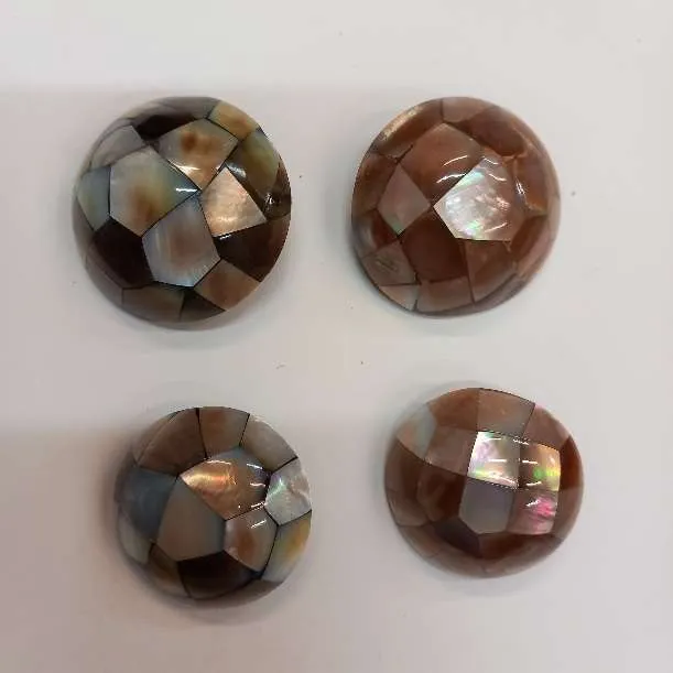 Bottone in madreperla applicata a mosaico. Si può applicare su cappotti, giacche, cardigan e anche come chiusura per le borse. Questo accessorio darà un tocco di lucentezza e di sfumature ai capi e agli accessori