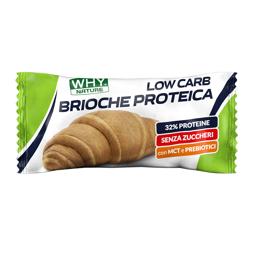 Brioche proteica è un croissant proteico senza zuccheri, perfetta nelle diete proteiche come snack spezzafame a metà mattina o pomeriggio. Ideale anche a colazione. Contiene 16 grammi di proteine, 1,8 gr di fibre e meno di 0,5 g di zuccheri. Arricchita con MCT e prebiotici. Gli MCT, acidi grassi a media catena, rappresentano una fonte eccezionale di “grassi buoni”, forniscono energia immediata all’organismo e sono particolarmente utili nei regimi alimentari che prevedono un ridotto apporto di carboidrati. I Prebiotici sono un tipo particolare di fibre alimentari, utili per l’equilibrio della flora intestinale.