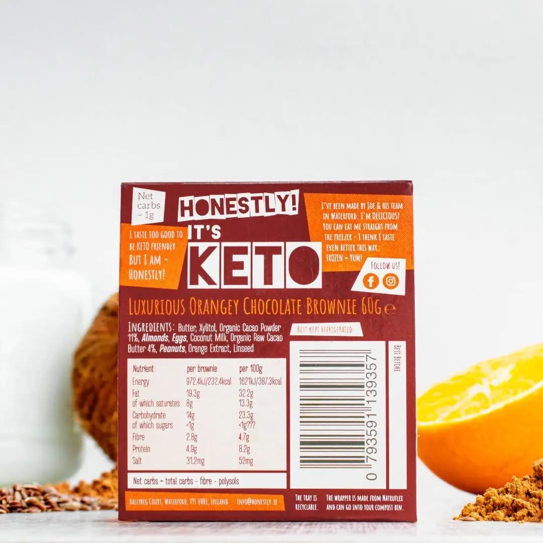 Ingredienti:Burro, xilitolo, cacao in polvere biologico, mandorle, uova, latte di cocco, burro di cacao crudo, arachidi, estratto di arancia, semi di lino