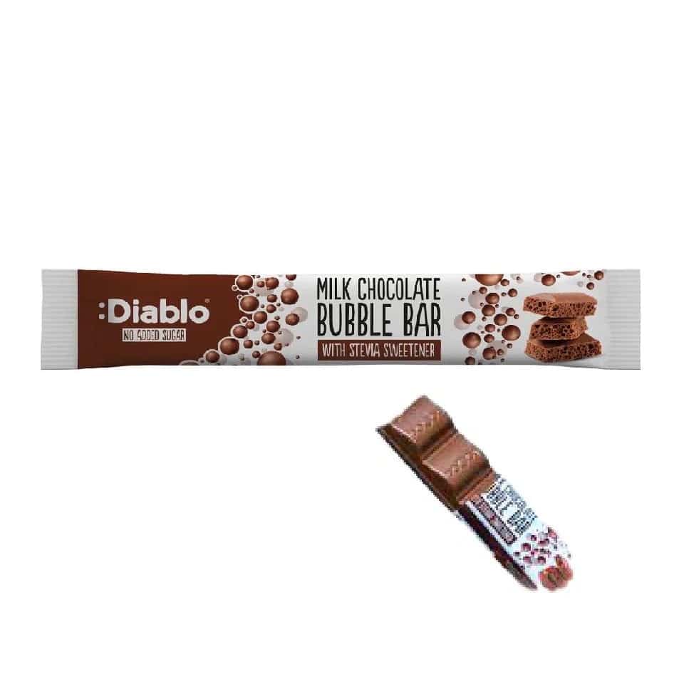 Ingredienti: Maltitolo, glicosidi steviolici; burro di cacao, latte intero in polvere , pasta di cacao, latte scremato in polvere , fibra: inulina; burro concentrato , siero di latte in polvere, emulsionante: lecitina di soia , E476; aromi. Solidi di cacao: minimo 30%.