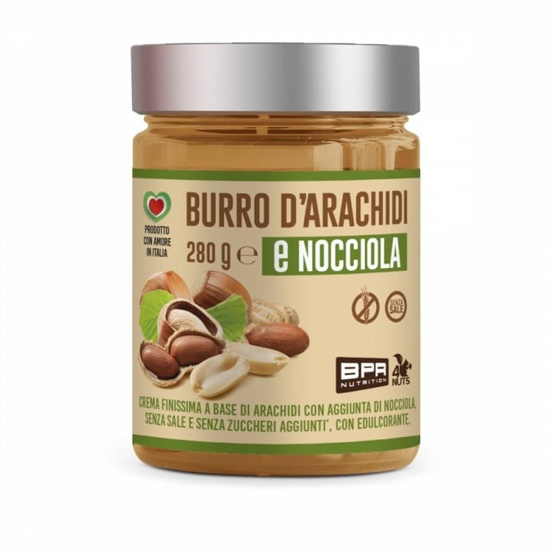 Ingredienti: Arachidi sgusciate e pelate (84%) (origine Extra UE), nocciole (15%), (origine Extra UE), edulcorante: eritritolo, aromi.