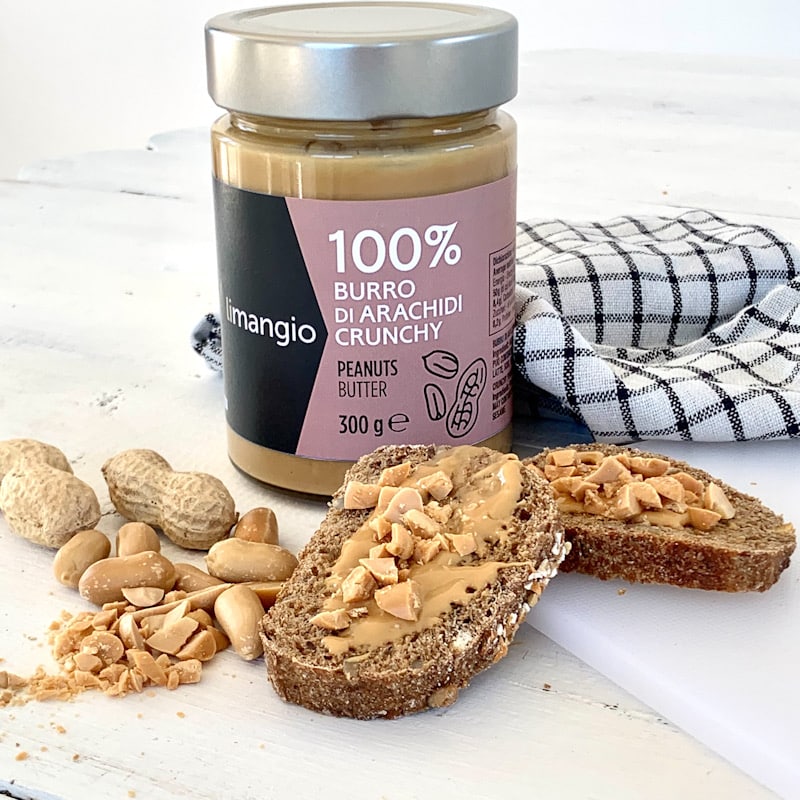 Il Burro di Arachidi Crunchy è una specialità preparata artigianalmente, composta per il 100% da arachidi di alta qualità e provenienti da agricoltura non OGM.