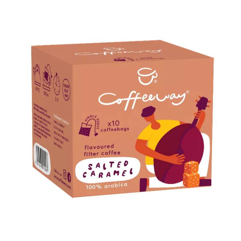 Ingredienti: Caffè macinato 100% Arabica in bustine monodose, aroma Caramello Salato