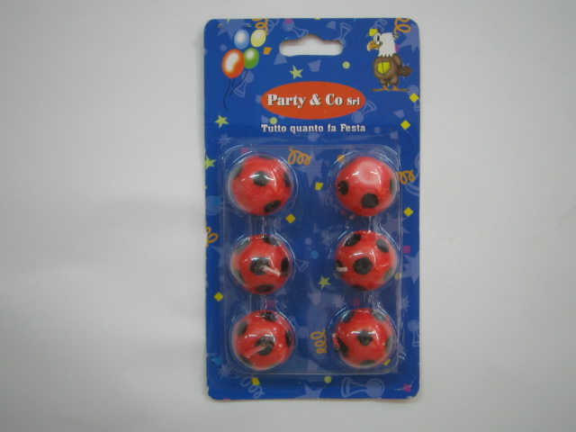Candele a forma di pallone colorate in rosso e nero, ideali per i tifosi del Milan, confezione di 6 pezzi.