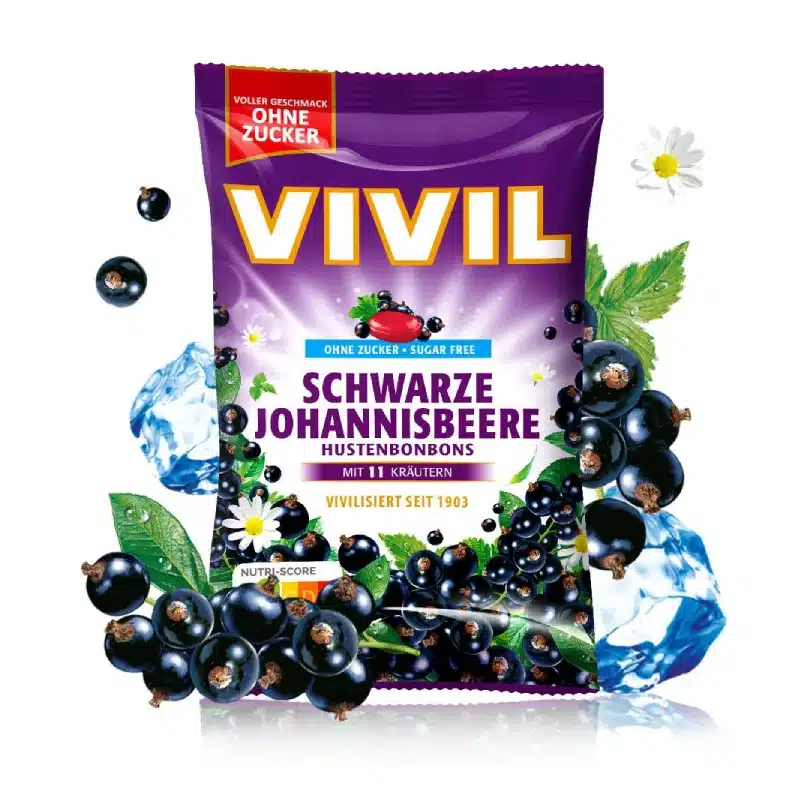 Queste caramelle senza zucchero Vivil al ribes nero contengono un mix di erbe con funzione lenitiva sia per la gola sia per la tosse.   Fanno parte della linea Vivil di caramelle senza zucchero integrate con vitamine/erbe , si tratta in pratica di caramelle “funzionali” anche se ovviamente stiamo sempre parlando di caramelle e il contenuto di vitamine aggiunto non è certamente paragonabile a quello di un vero e proprio integratore alimentare.