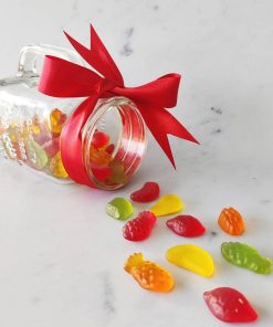 Ingredienti: Edulcorante: maltitolo, gelificante: gelatina, acqua, acidificante: acido citrico, aromi naturali: (ciliegia, fragola, arancia, limone), vitamina C (0,5%), estratti vegetali coloranti: (concentrato di succo di carota nera, concentrato di spirulina e cartamo estratto), colorante: luteina, agente di rivestimento: (olio di cocco, olio di canola, cera carnauba), edulcorante: glicosidi steviolici.
