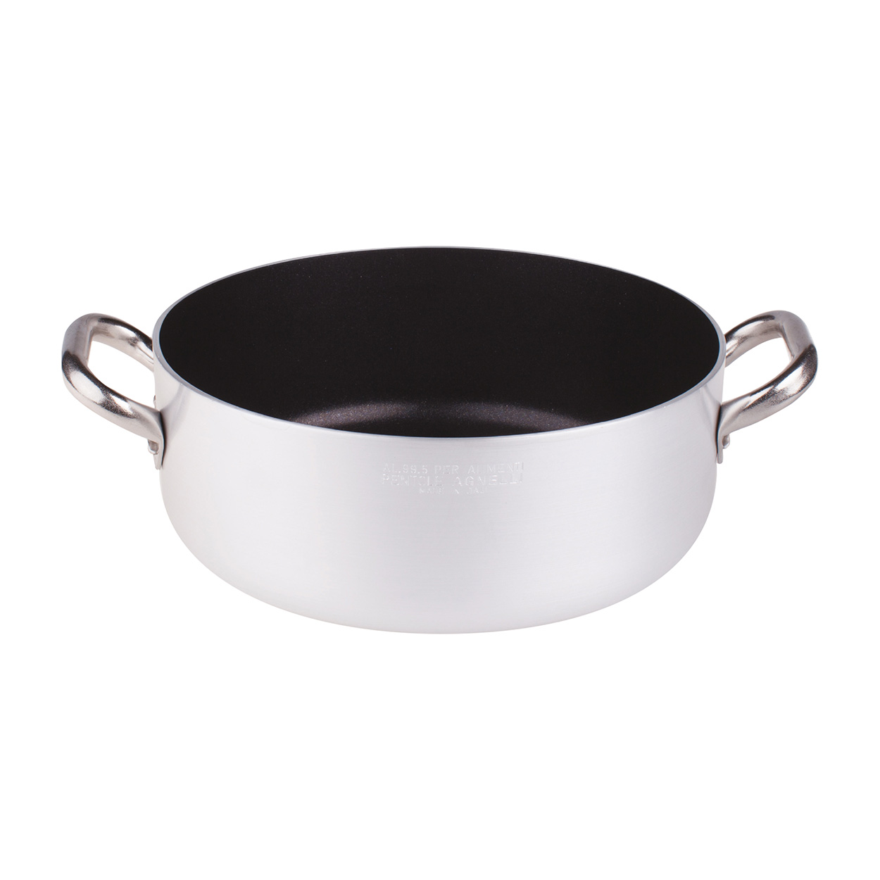 La casseruola bassa due maniglie Platinum da 40 cm, della linea Platinum di Agnelli S.P.A., è un prodotto di alta qualità pensato per le cucine professionali. Realizzata in alluminio di 3 mm di spessore con rivestimento antiaderente interno, questa casseruola garantisce una distribuzione uniforme del calore e una cottura efficiente su tutti i piani cottura, inclusi quelli a gas, elettrici e radianti. Le due maniglie in acciaio inox, prive di nickel, offrono una presa salda e sicura, facilitando le operazioni di cottura e servizio. Ideale per brasare, arrostire, gratinare, stufare, preparare salse e creme, tirare fondi e mescolare composti, questa casseruola è estremamente versatile e si adatta a diverse preparazioni culinarie. L’alluminio, materiale leggero e resistente alla corrosione, assicura una lunga durata nel tempo, mentre il rivestimento antiaderente facilita la pulizia e riduce l’uso di oli. Scegliere la casseruola bassa Agnelli significa investire in un prodotto di eccellenza, un alleato prezioso per gli chef che cercano il massimo della performance e della versatilità.