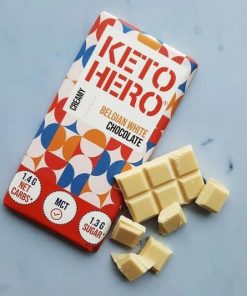 Ingredienti: burro di cacao, latte intero in polvere (18%), inulina, edulcorante : eritritolo, pasta di cacao, proteine del latte, emulsionante: lecitina di girasole, estratto di vaniglia, edulcorante: glicosidi steviolici, MCT in polvere. Cacao: 33% minimo. Questo cioccolato può contenere tracce di frutta a guscio.