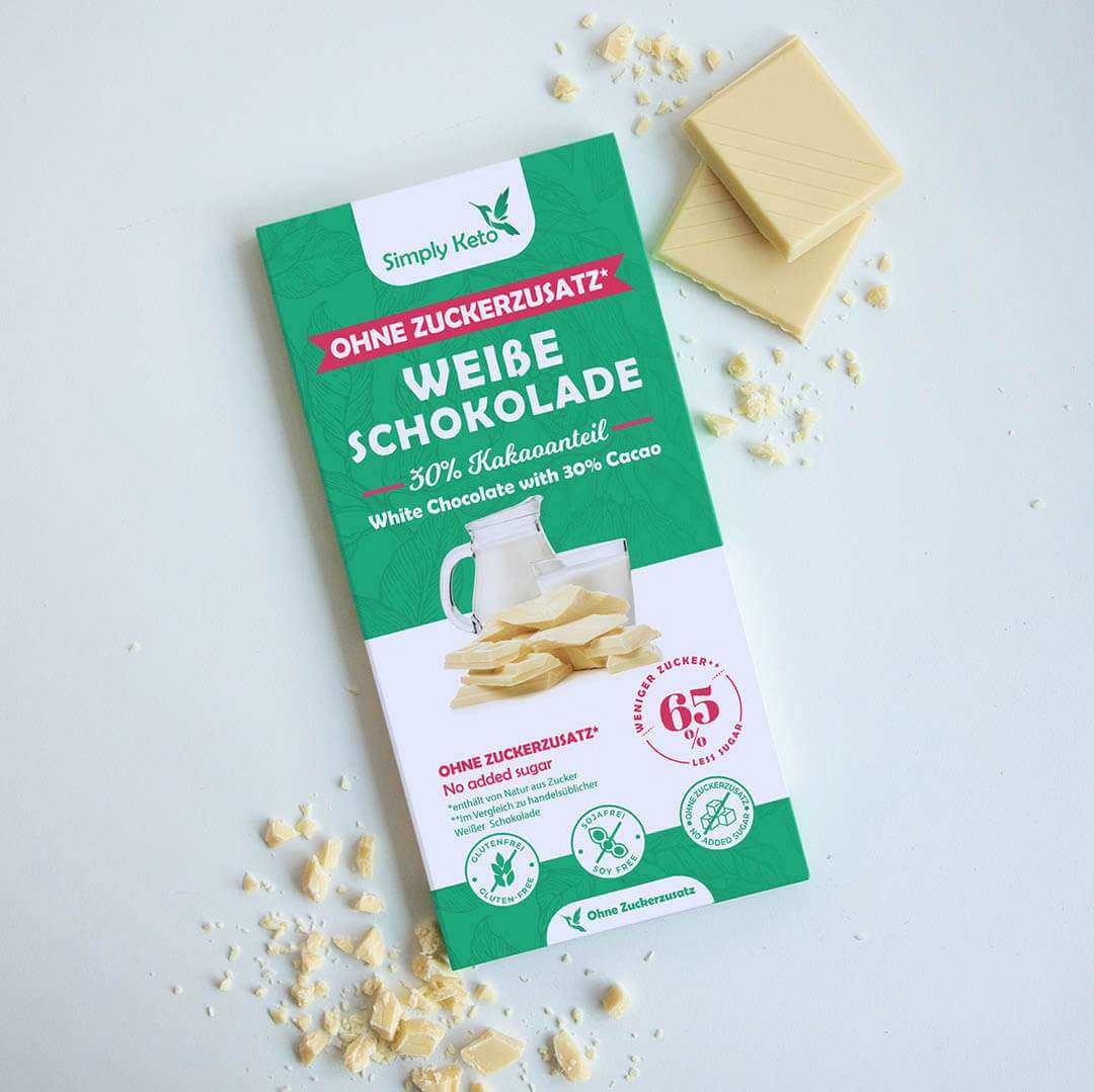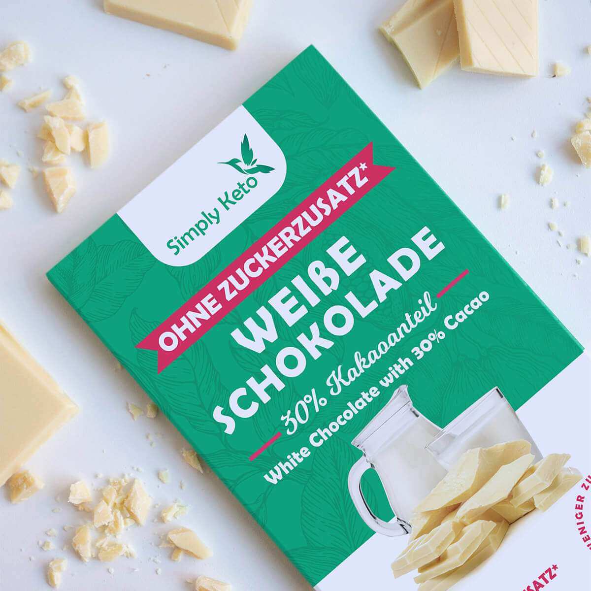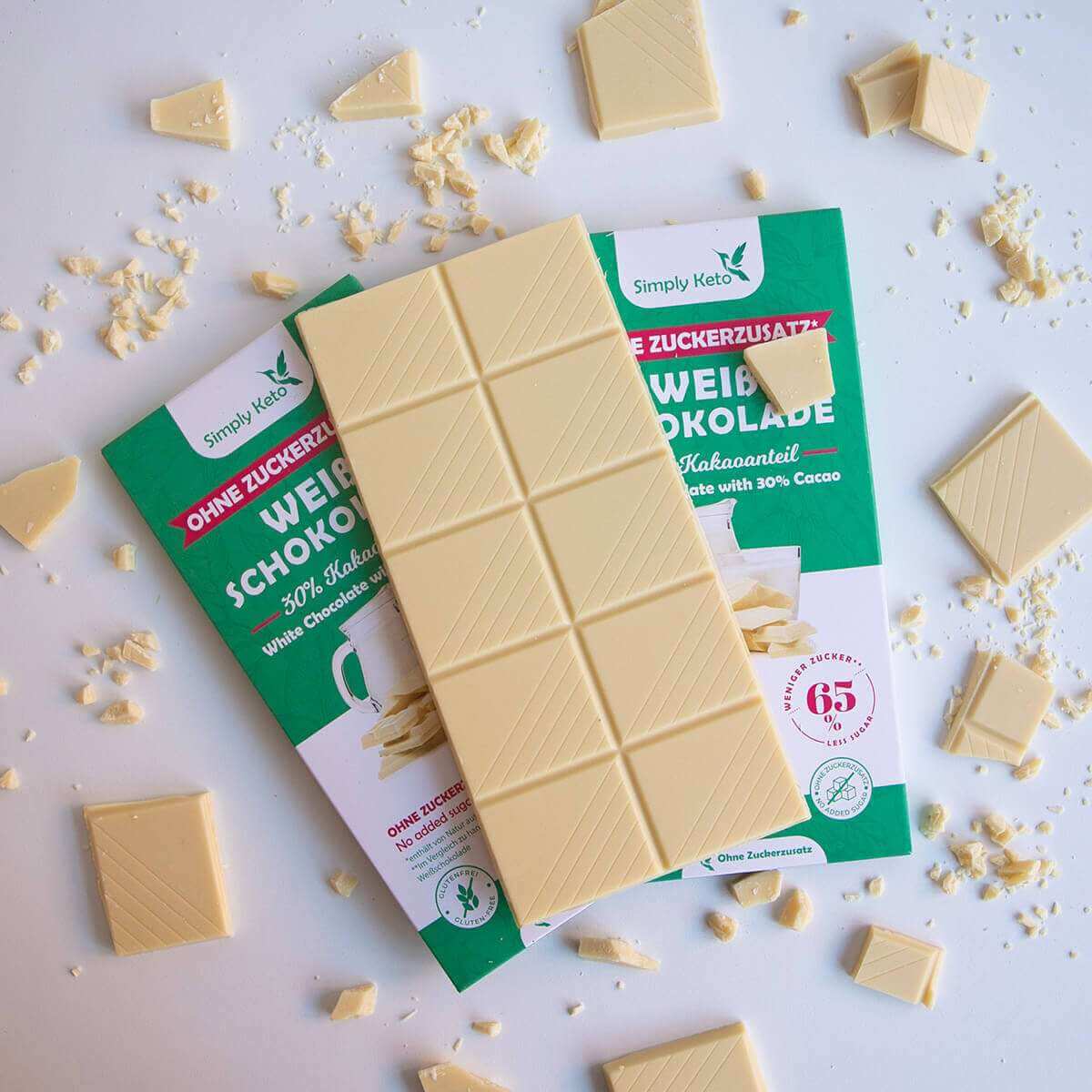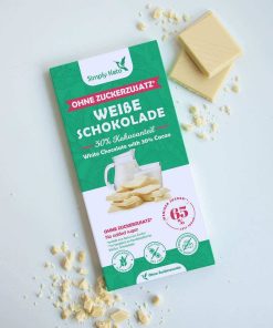 Il nostro cioccolato bianco convince per il suo gusto e i suoi valori nutrizionali. Simply Keto White Chocolate ha il 6-5 % in meno di zucchero rispetto al normale cioccolato bianco. Lo zucchero rimanente è ovviamente contenuto negli ingredienti come il latte in polvere. Non c’è zucchero aggiunto nei cioccolatini. È qualcosa di cui essere orgogliosi!