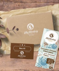 Ingredienti: Burro di cacao, latte di cocco in polvere (19%), eritritolo (16%), fibre alimentari (polidestrosio, inulina), cacao magro in polvere, amido di tapioca, emulsionante (lecitina di girasole), aromi, glicosidi steviolici (70mg/kg. Dolcificato con edulcoranti salutari.