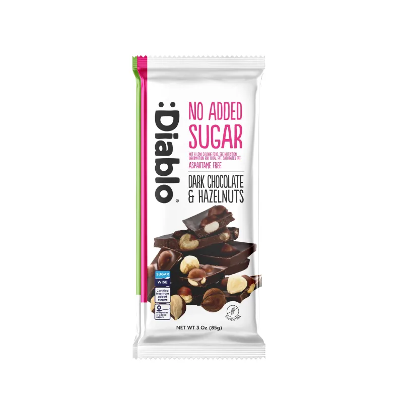 Cioccolato fondente senza zuccheri aggiunti con nocciole e maltitolo 85gr Diablo