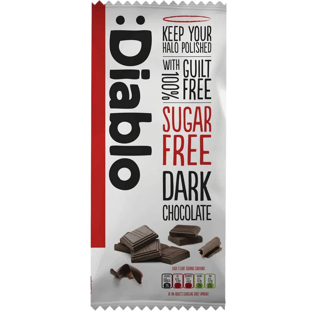 Ingredienti: edulcorante maltitolo, pasta di cacao, burro di cacao, cacao magro in polvere, lecitina di soia ed emulsionanti E476, aroma. Cacao solido min.49 %