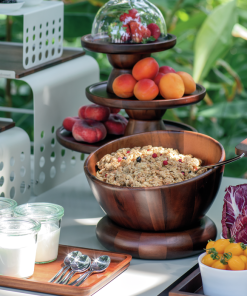 La Ciotola Conica Radici 26×15,5h cm di Sambonet Paderno Industrie Arthur Krupp è un elemento distintivo e di grande impatto visivo per i professionisti del settore Horeca, ideata per infondere un senso di raffinatezza naturale e calore a ogni allestimento. Realizzata in pregiato legno di acacia, questa ciotola si distingue per il suo design elegante e minimalista, che la rende straordinariamente versatile per la presentazione di una vasta gamma di pietanze. Completamente idonea al contatto alimentare, la ciotola Radici è ideale per servire con stile antipasti, insalate miste, composizioni di frutta fresca o dessert elaborati, esaltando la bellezza intrinseca e i colori vibranti degli ingredienti. La sua forma conica non solo aggiunge un tocco di estetica ricercata, ma la rende anche un versatile elemento decorativo, capace di integrarsi armoniosamente in qualsiasi tipo di mise en place, allestimento per buffet sontuosi o banchetti raffinati. È fondamentale sottolineare che, per preservare la bellezza e l’integrità del legno di acacia e garantire una lunga durata, la ciotola Radici non è lavabile in lavastoviglie; si raccomanda invece una cura ottimale tramite lavaggio a mano con acqua tiepida e sapone neutro. Questa attenzione alla manutenzione assicura che il prodotto mantenga inalterato il suo fascino e le sue proprietà nel tempo, confermando l’investimento in un accessorio professionale di alta qualità e inconfondibile impatto visivo.