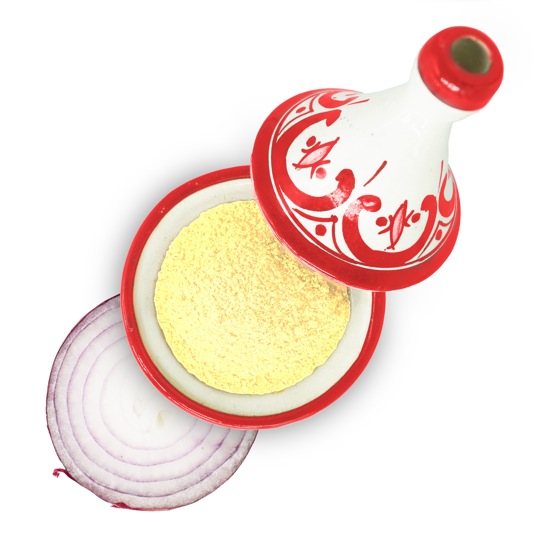 Cipolla disidratata in polvere. Un condimento pratico e versatile per aggiungere ai piatti un gusto saporito e leggermente dolce di cipolla.
