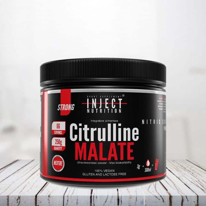 La Citrullina malato della Inject Nutrition è un integratore alimentare a base di citrullina, un aminoacido in grado di incrementare il livello di arginina nel sangue e quindi di conseguenza la vasodilatazione e l’apporto di nutrienti al tessuto muscolare, che ne guadagna in ossigenazione, veicolando l’aumento della massa magra e il GH.