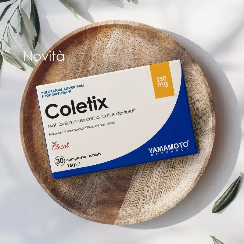 Yamamoto® Research Coletix® è un integratore alimentare a base di estratto di ulivo certificato Olecol®, riso rosso fermentato (Monascus purpureus), gamma orizanolo e completato con coenzima Q10.