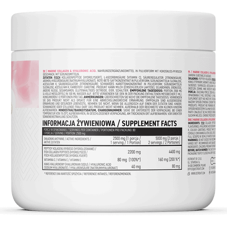 - 2200 mg di peptidi di collagene di pesce di tipo I con acido ialuronico e vitamina C in una porzione!