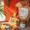 INGREDIENTI: Glutine di frumento, Farina di frumento, Farina di Mandorla, Farina di Avena e di Manitoba, inulina, Oli e grassi vegetali non idrogenati, olio di cocco, maltitolo, proteine della soia, albume, acqua, lievito madre, burro chiarificato.