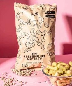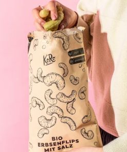 Il nostro spuntino biologico è composto da soli quattro ingredienti: piselli, olio di semi di girasole, riso e sale marino – tutto qui. A parte il sale marino, tutti gli ingredienti provengono da agricoltura biologica. Non mettiamo alcun tipo di conservante, colorante o additivi nei nostri prodotti. Così meravigliosamente croccanti, salati e con un retrogusto di piselli, le nostre chips sono una vera delizia. E seppur contengano un po’ d’olio, non avrai quella sensazione al palato di unto e grasso. Le nostra chips di piselli sono una meravigliosa alternativa alle patatine convenzionali. Provale anche con l’ hummus!