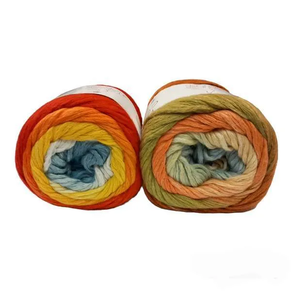 Filato in cotone Mako effetto felpato e sfumato con struttura a catenelle per dare volume ai lavori realizzati. Adatto per realizzare sciarpe, stole, maglieria, borse