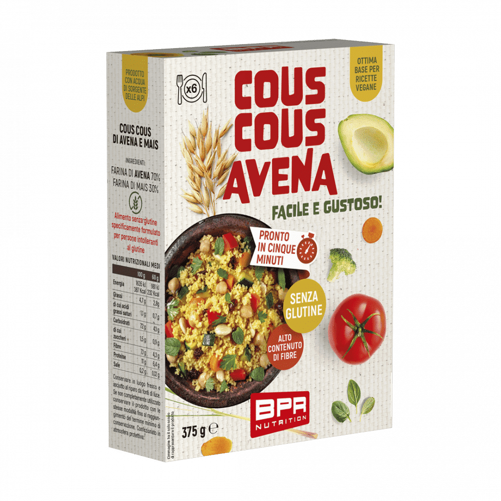 Il Cous Cous Avena è una valida alternativa a pasta e riso altamente digeribile, ad alto contenuto di fibre, facile e veloce da preparare, bastano 5 minuti. Il prodotto è specificamente formulato per intolleranti al glutine.