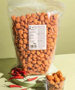 | Ingredienti | 52% riso glutinoso, olio di palma, SALSA DI SOIA (SOIA, GRANO, sale, acqua), zucchero, 4,8% peperoncino tostato in polvere (zucchero, spezie: Aglio, cipolla, peperoncino, scalogno; sale, SALSA DI SOIA IN POLVERE (SOIA, GRANO, sale), aroma: olio di cocco, SHRIMPS; tapioca maltodestrina, colore: estratto di paprika; esaltatore di sapore: E635; acidificante: acido citrico; antiossidante: tocoferolo (OLIO DI SOIA)), 0,14% peperoncino in polvere, amido di tapioca modificato, aglio e cipolla in polvere (spezie: aglio, scalogno, cipolla; zucchero, sale, maltodestrina di tapioca, proteine vegetali idrolizzate (SOY), POLVERE DI SALSA DI SOIA (SOIA, GRANO), aroma di aglio (OLIO DI SOIA), esaltatore di sapidità: E635), colore: estratto di paprika. |