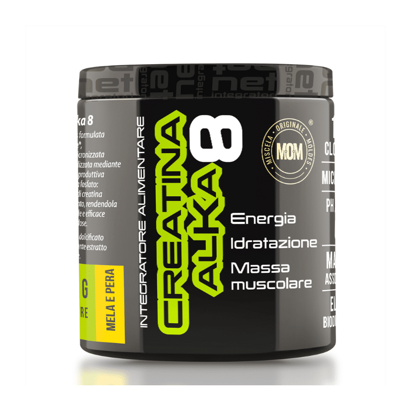 Creatina Alka 8 viene realizzata con Clonapure® una speciale forma di creatina che contiene Creatina Fosfato la forma di creatina più efficace. Questo speciale brevetto garantisce che il prodotto sia altamente biodisponibile ed efficace sin dalla prima dose, garantendo una rapida produzione energetica e massimizzando la crescita muscolare. Clonapure® oltre che essere prodotta con materie prime di altissima qualità, è micronizzata 200 mesh consentendo un rapido assorbimento nell’organismo ed inoltre è alcalina pH 8 consentendo al mantenimento dell’alcalinità del nostro organismo. L’integratore è disponibile nella versione con creatina in polvere o in capsule.
