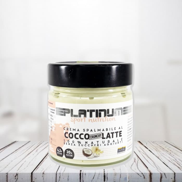 INGREDIENTI: Cocco in polvere (32%), edulcorante maltitolo, Olio di semi di girasole alto oleico, proteine del sieto del latte isolate ISOLAC, Fibre vegetali, Crispy proteico(proteine del latte 3%), emulsionante lecitina di girasole.
