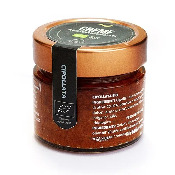 ✅ CARATTERISTICHE: Cipollata in olio extravergine d’oliva bio – Vegetali di sola produzione aziendale, rigorosamente biologici, scottati, frullati e conservati in olio extravergine d’oliva, naturali senza aggiunta nÈ di esaltatori di sapidità ne di conservanti.