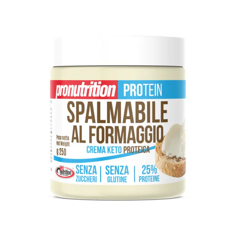 Crema proteica spalmabile gusto fontina al 25% di proteine isolate del siero del latte,senza zuccheri,senza olio di palma,senza glutine idonea ad una dieta vegetariana-